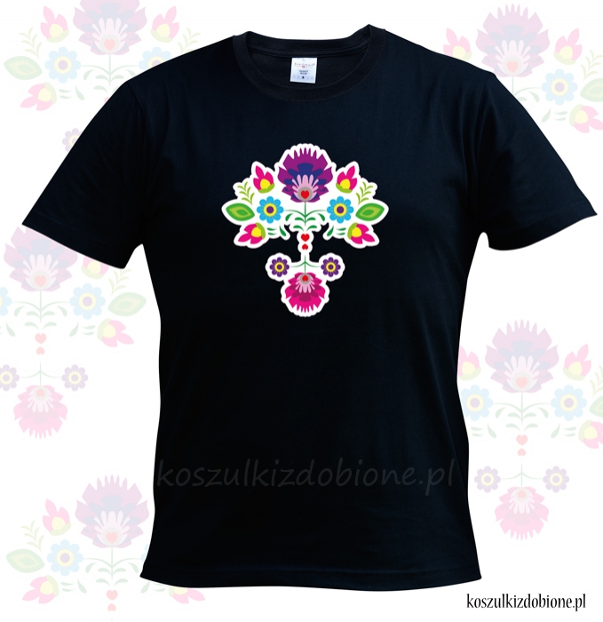 Koszulka folk Kaszubski kwiat zdobione